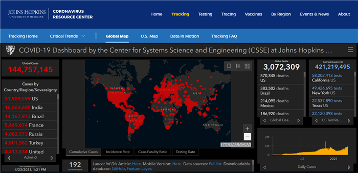 This is one of the most authoritative sites for real-time data on COVID-19. The advantage is that it is in the form of a map, the redder the worse, so it is very visualized.