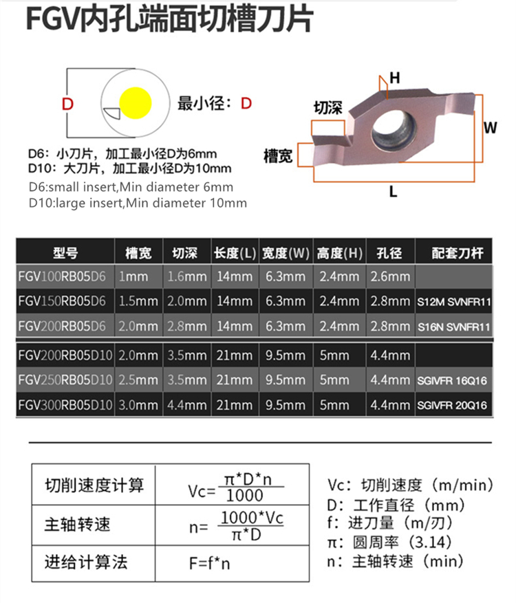 Small diameter face grooving inserts FGV100/150/200/250/300RB05D6/D10