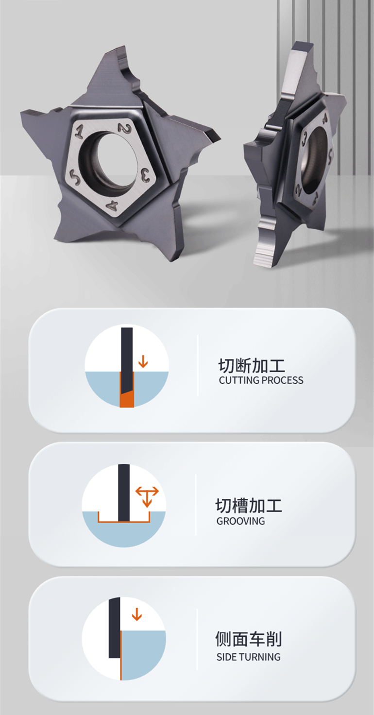 2 Extended Tool Life: These inserts are made from high-quality carbide materials and feature advanced coatings that enhance their wear resistance. This results in longer tool life and reduced tooling costs, as the inserts can withstand the demands of parting and grooving applications for extended periods.
