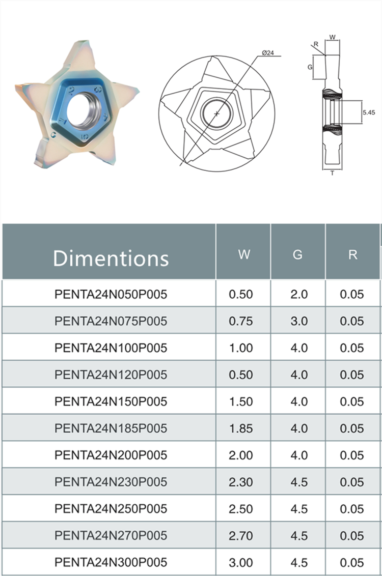 3 Accurate Parting and Grooving: The precise cutting geometry of the Penta 24 inserts enables accurate parting and grooving operations. The inserts provide good chip control and excellent surface finish, ensuring the desired dimensions and surface quality of the machined parts.