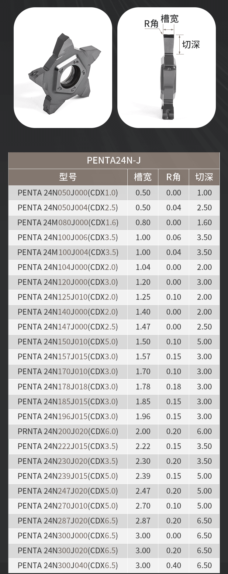3 Accurate Parting and Grooving: The precise cutting geometry of the Penta 24 inserts enables accurate parting and grooving operations. The inserts provide good chip control and excellent surface finish, ensuring the desired dimensions and surface quality of the machined parts.