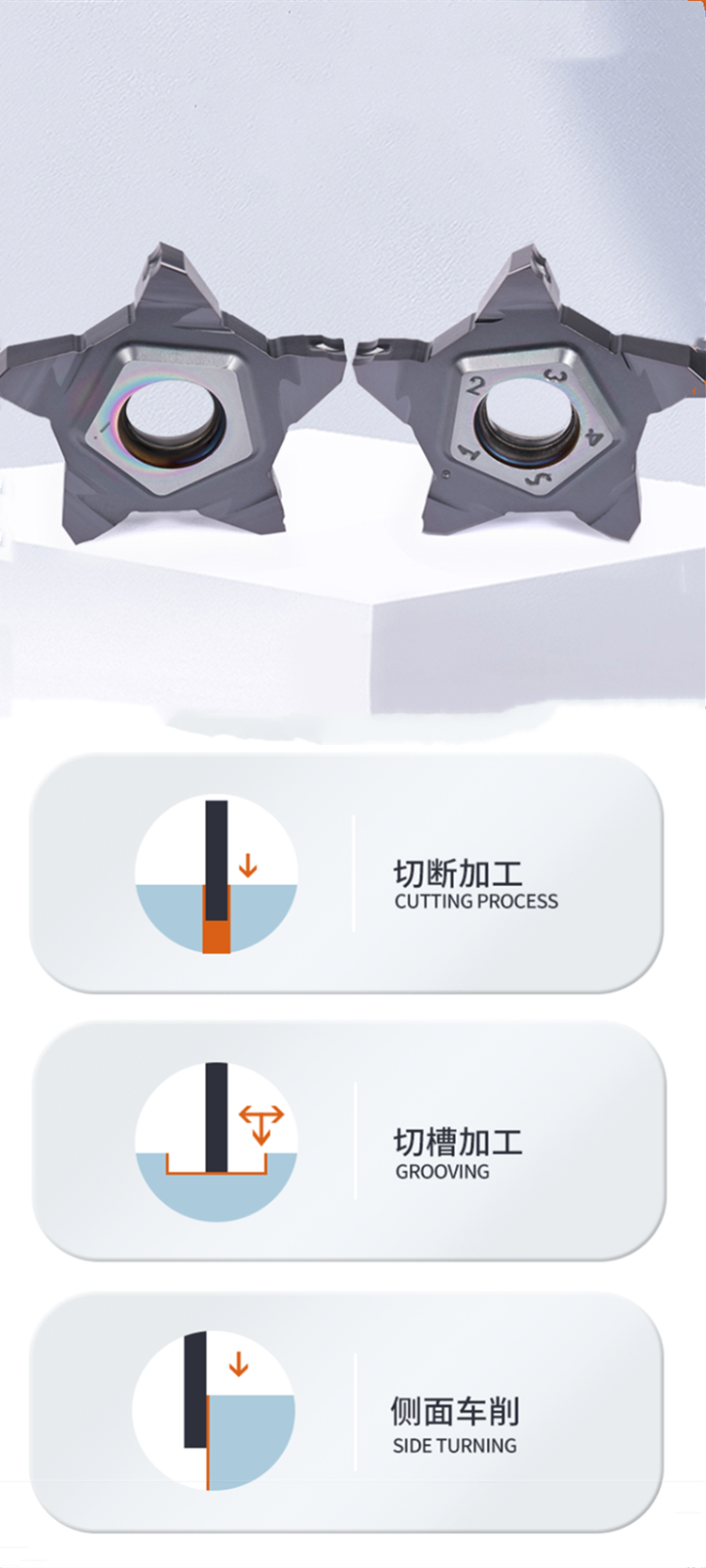 2 Extended Tool Life: These inserts are made from high-quality carbide materials and feature advanced coatings that enhance their wear resistance. This results in longer tool life and reduced tooling costs, as the inserts can withstand the demands of parting and grooving applications for extended periods.