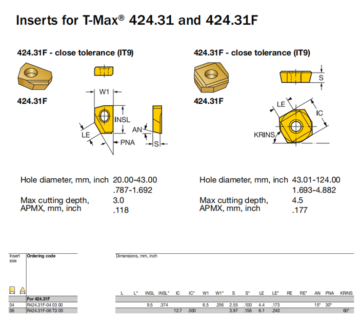 T-MAX®424.31F Counterboring head insert R424.3106T300