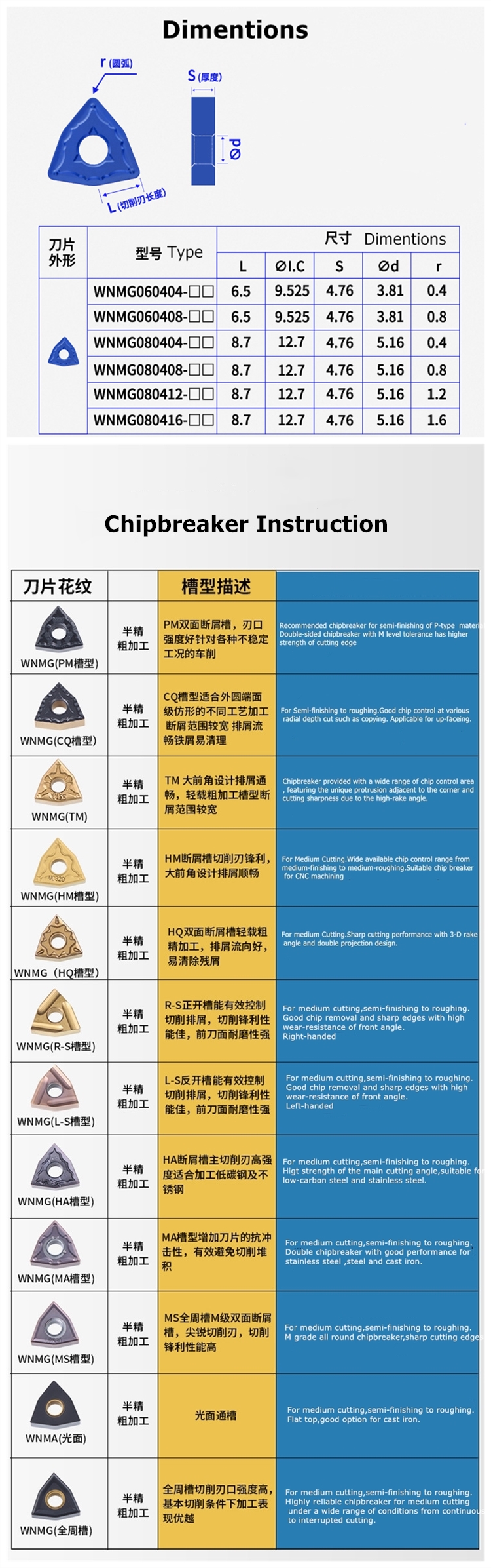 Carbide Turning Inserts WNMG080404/08/12-MA Cutting Tool for CNC machining