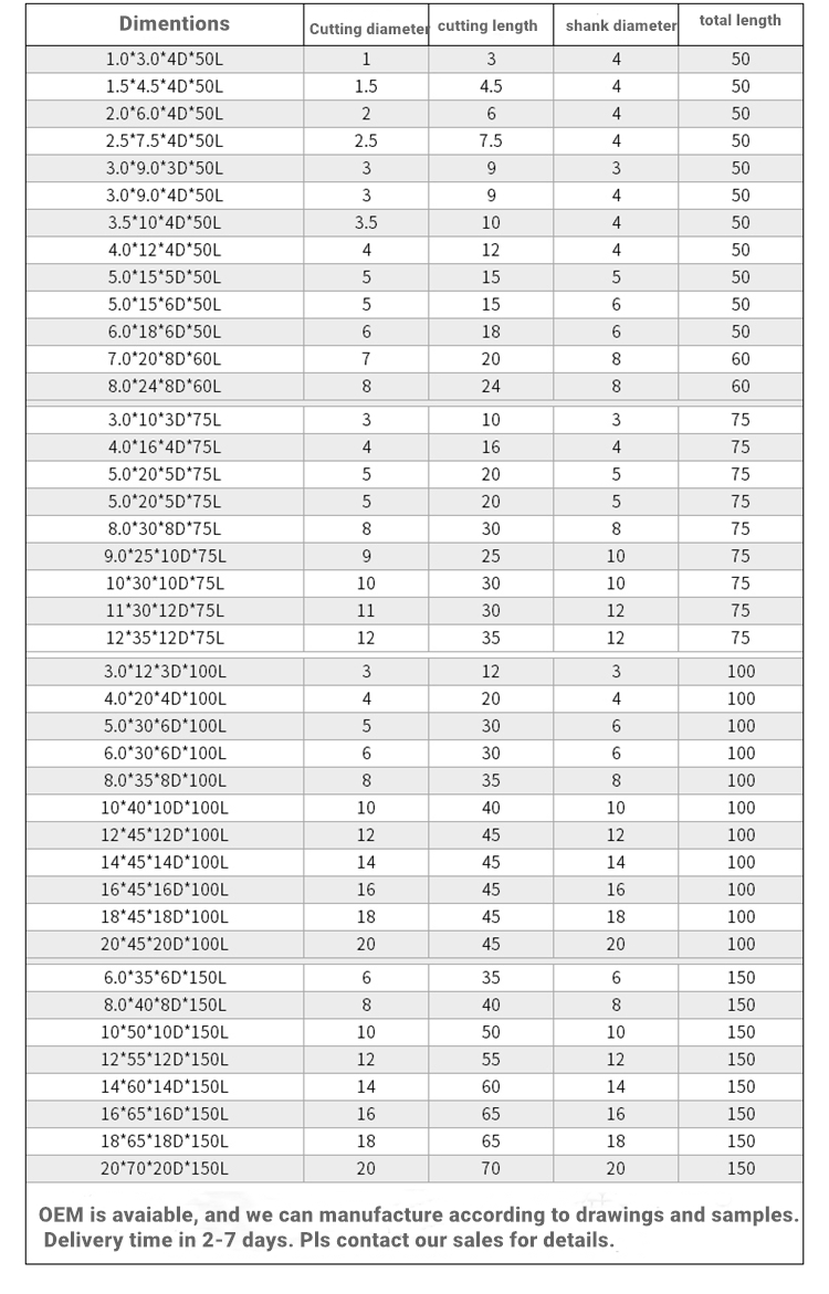 Helix Angle | 10degree,15degree,25degree,35degree,45degree,55degree |